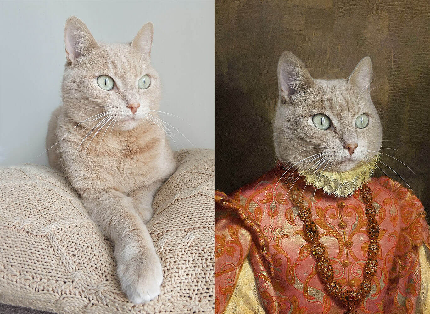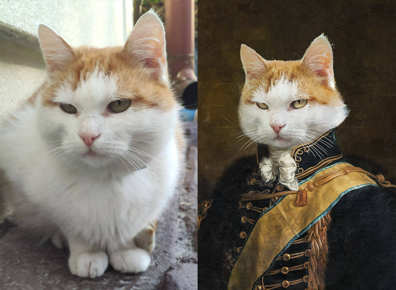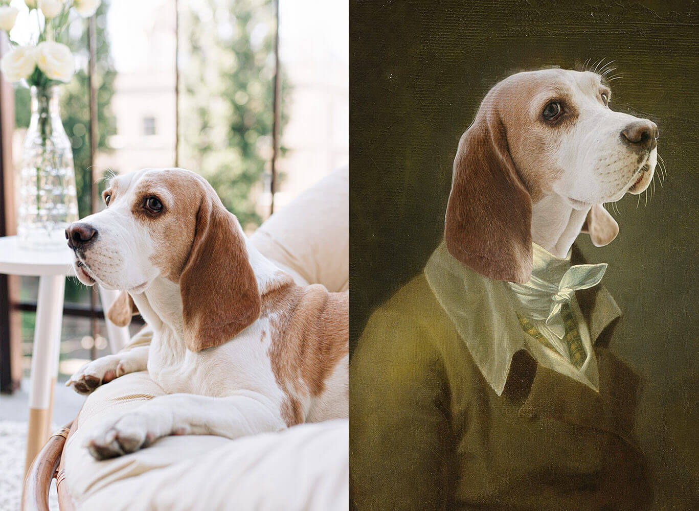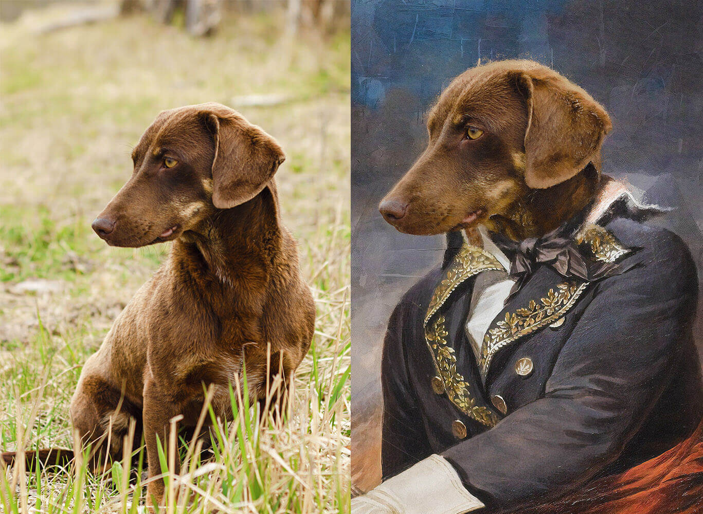 Podczas procesu tworzenia obrazu używamy dokładnie tego zdjęcia, które prześlesz wraz z zamówieniem. Upewnij się więc, że portret Twojego zwierzaka dobrze pasuje do wybranego szablonu portretu (kąt patrzenia, grubość szyi etc), a także, że jesteś ogólnie zadowolony z przesłanej fotografii, ponieważ nie poddajemy jej potem retuszowi, ani nie usuwamy żadnych elementów.